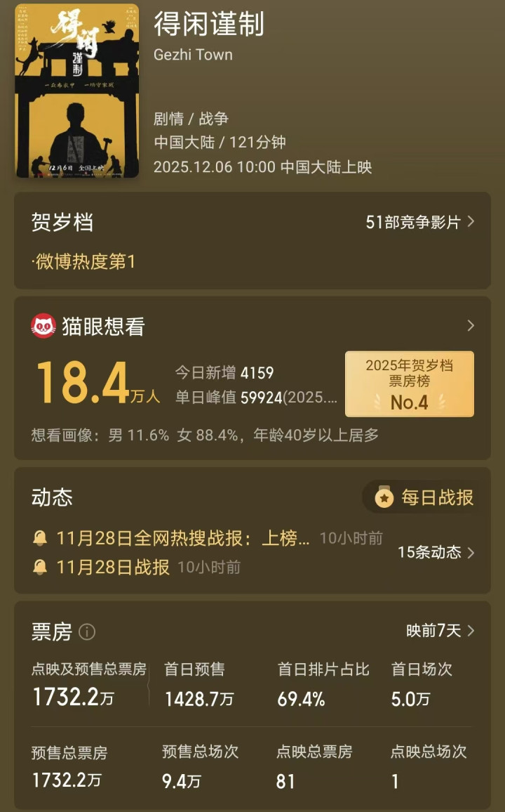《得闲谨制》刚定档不久,预售票房就突破了千万,肖战影响力依旧很大。
